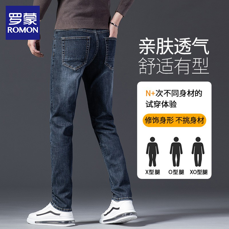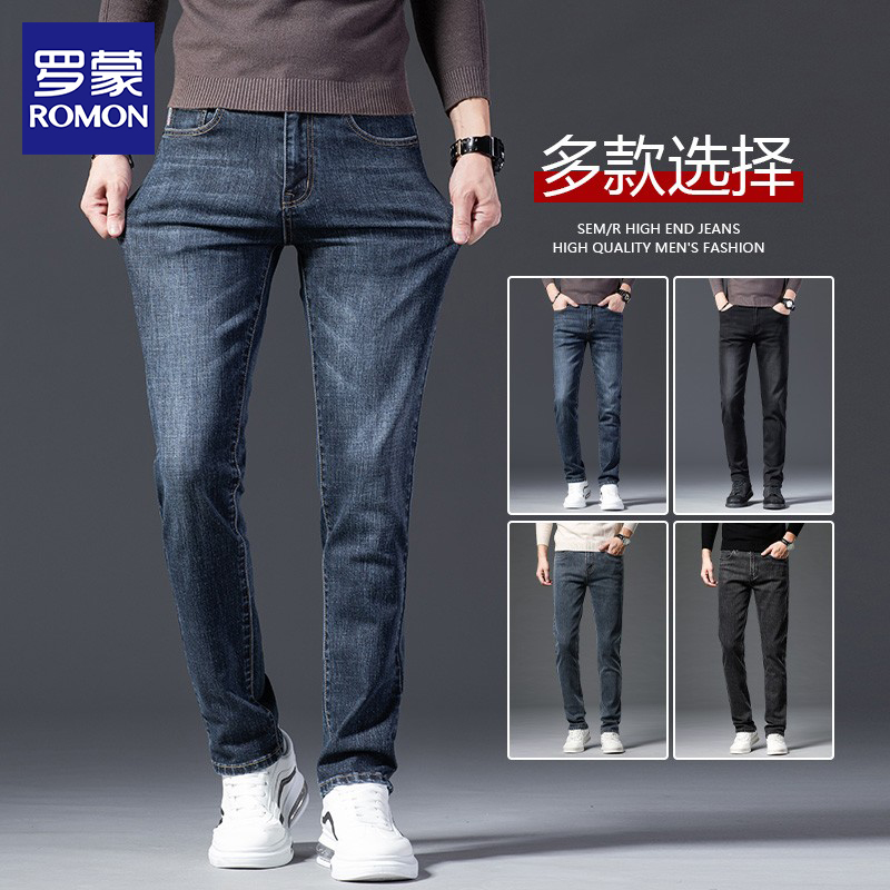 Romon Jeans Men's Spring And Autumn Stretch Straight Barrel Loose 2022 New Men Casual Long Pants Summer Thin