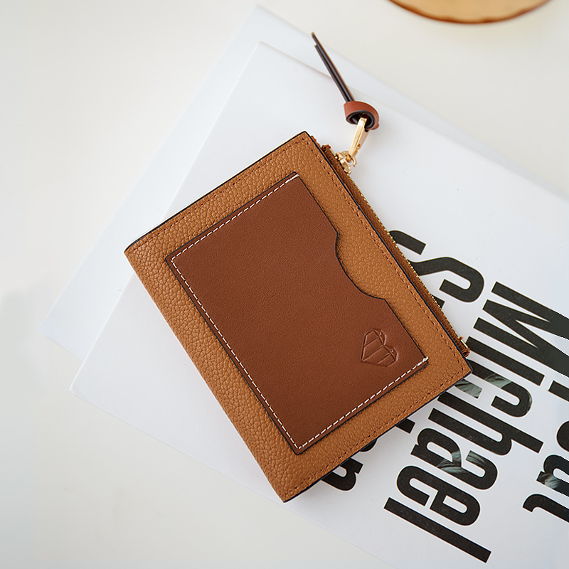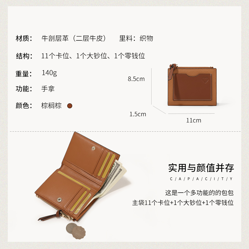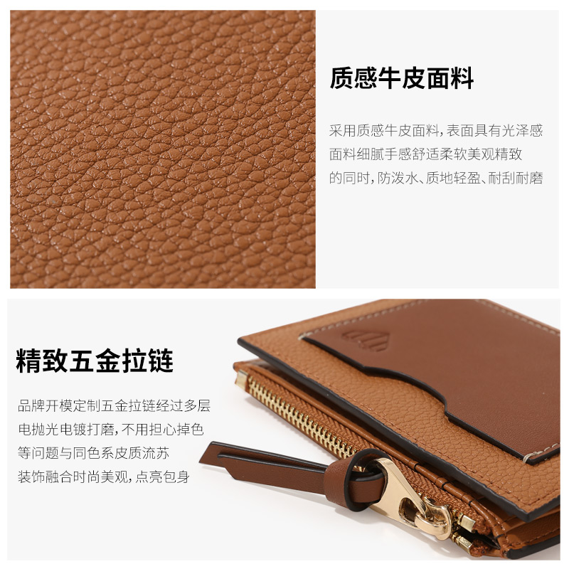 TOUTOU2021 New Bull Leather retro zipper short clip thin multi - card multi - function change card package woman