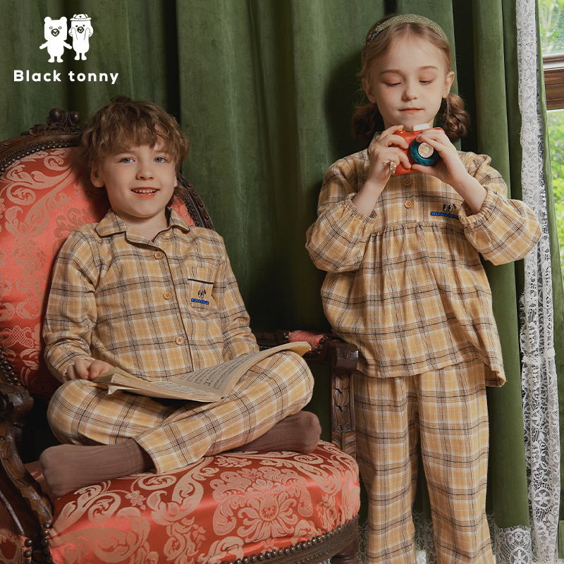 Small Black Child Nicki 2022 Spring Autumn Pure Cotton Children Pyjamas Girls Long Sleeve Suit Children's Cousin's Home Suit Suit