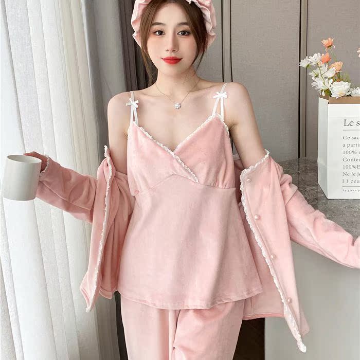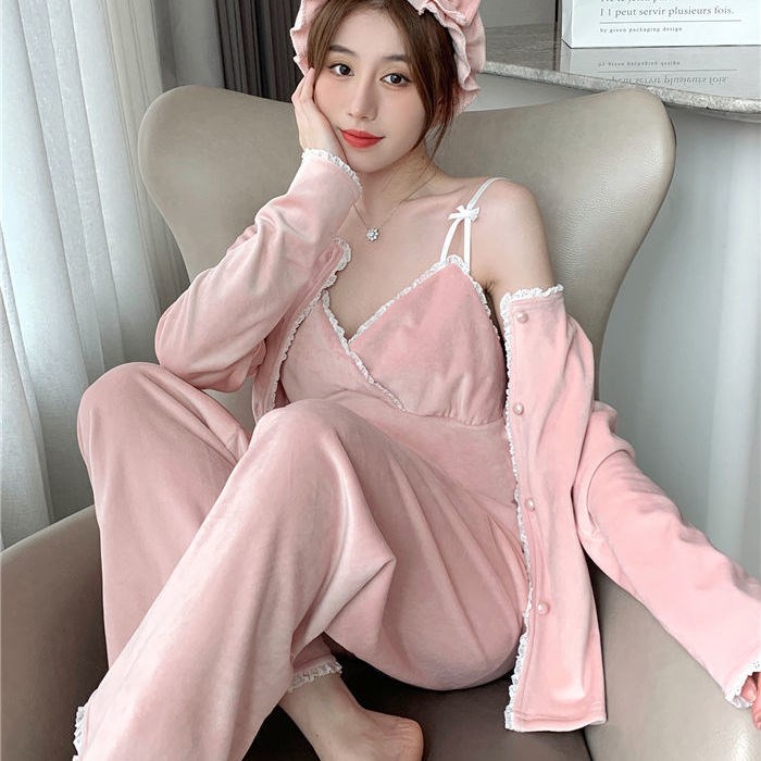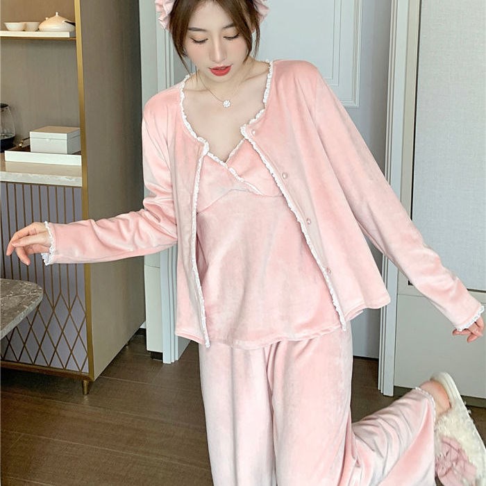 Pajamas 2021 New Ladies Autumn Winter Three Sets Sexy Long Sleeves Loose Velvet Sweet Home Suit Women