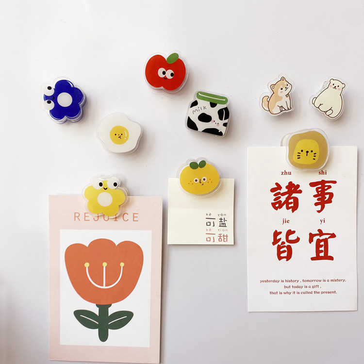(4) Cute Flowers Small Apple Magnetic Home Decoration Products Cartoon Acrylic Magnetic Sticker Magnetic