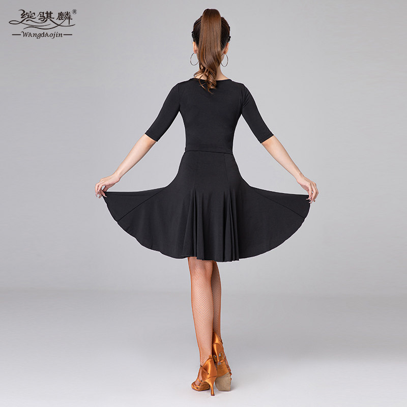 Binqilin Latin dance dress women's new dance skirt practice clothing large swing skirt black pool skirt adult national standard dance