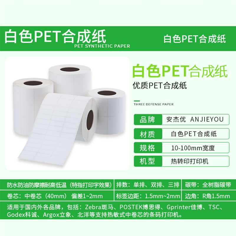 White pet synthetic paper sticker label waterproof oil and tear 30 40 50 60 70 cable glass sticker print custom logo building materials label paper supermarket price tag label label label paper