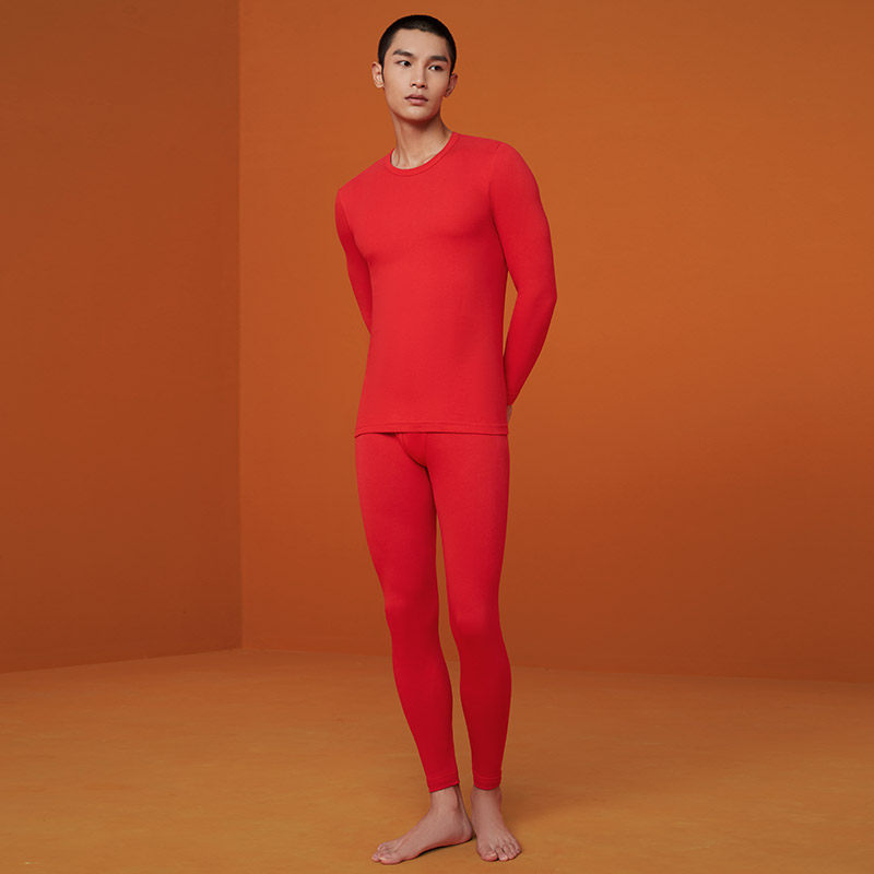 Three-gun heating underwear women's cotton men's and women's big red auspicious birthday red autumn clothes sanitary pants suit women