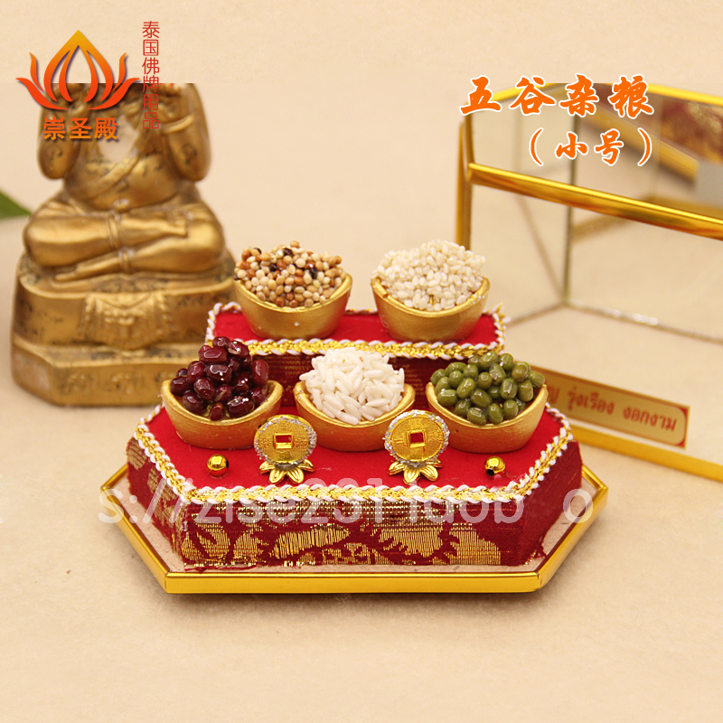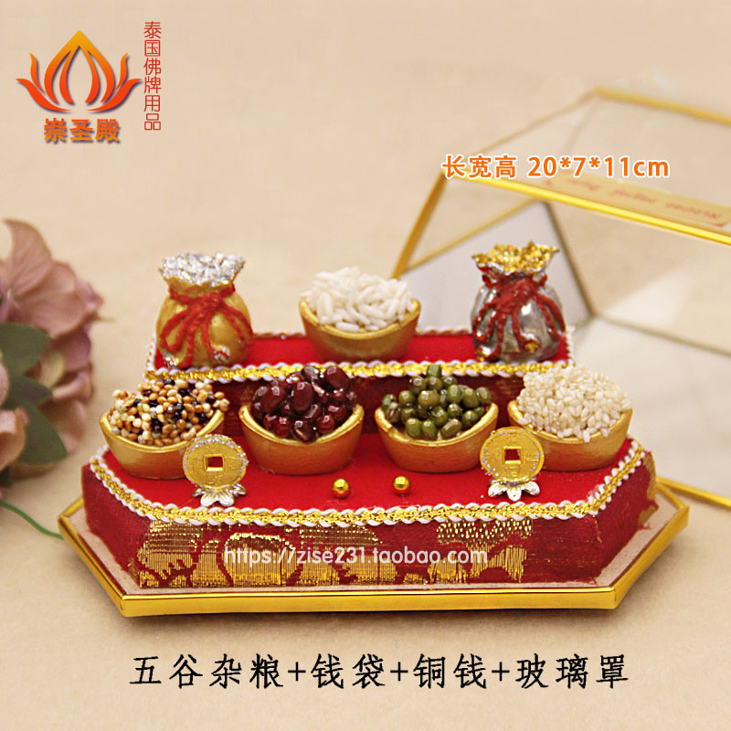 Thai Buddha brand shell grains five want to eat gold and silver money bag copper coin combination ornaments dust supply platform base