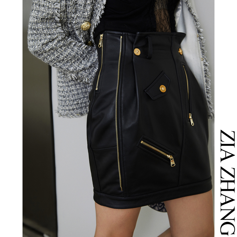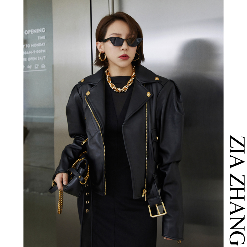 Z Boss Moden Show Room With Beauty Dutha Sheep Leg Cuff Thick Goat Leather Jacket High Waist Genuine Leather Flower Bust