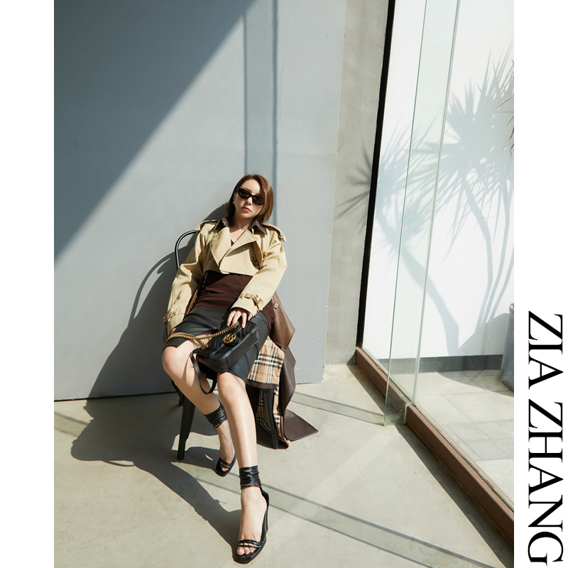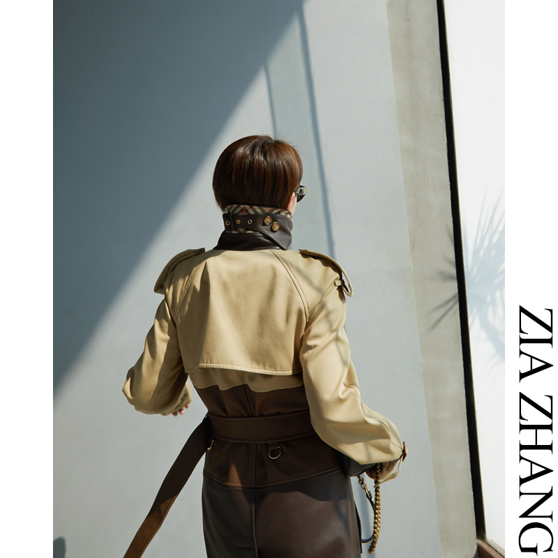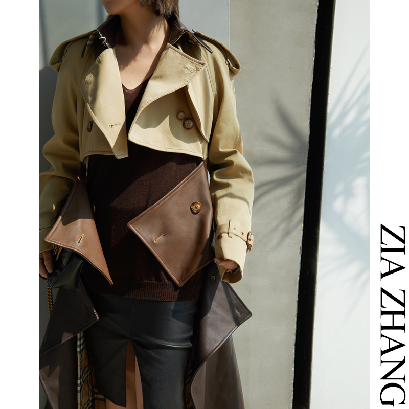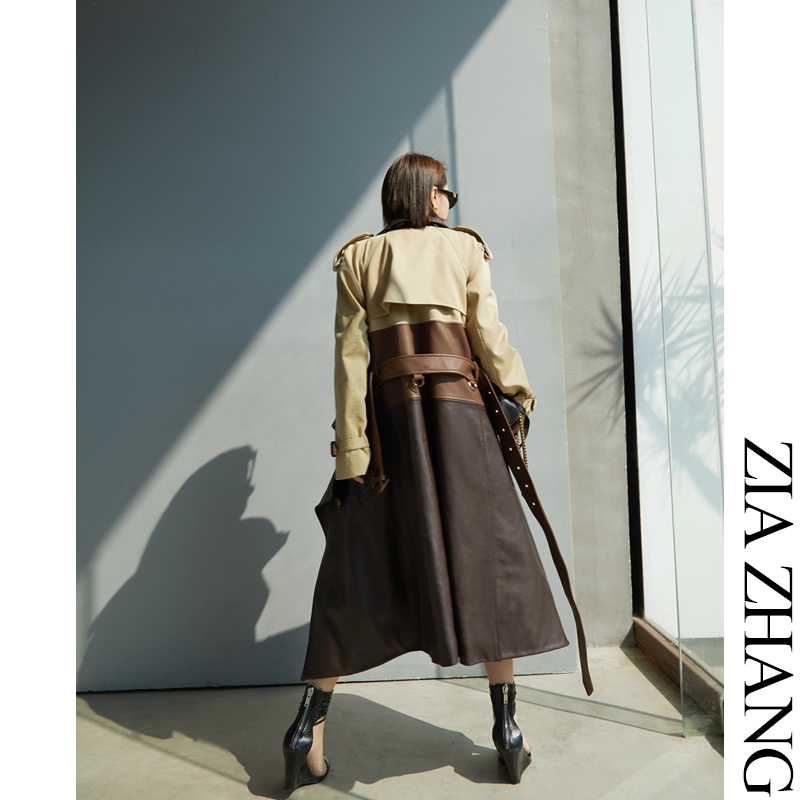 Z Boss Yinglun Detective Lambskin Splicing of the Long version of the Genuine Leather Windsuit Woman in the Shoulder Cuff