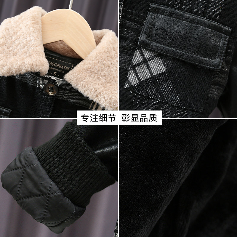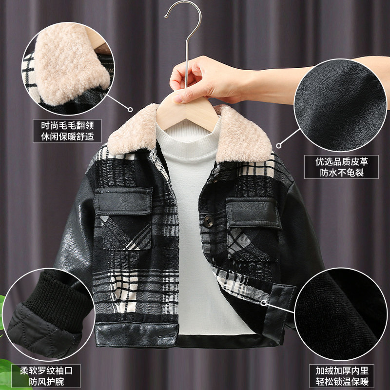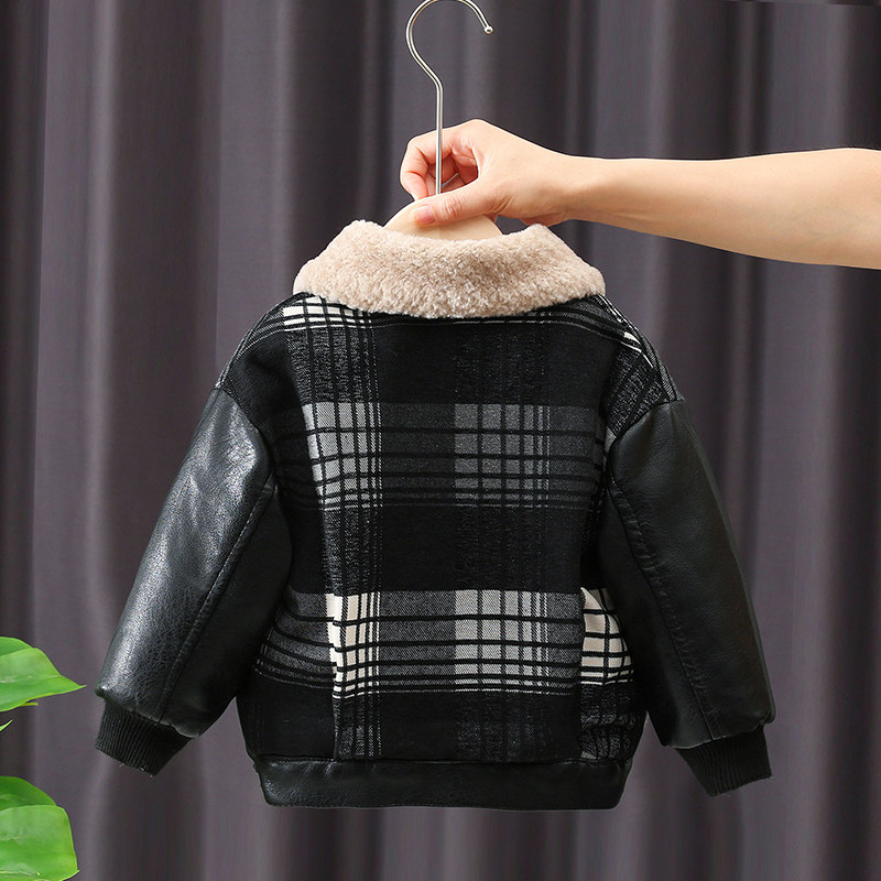 Boys leather jacket 2021 new children's jacket autumn and winter plus velvet thick baby winter clothing Korean version of the Western style