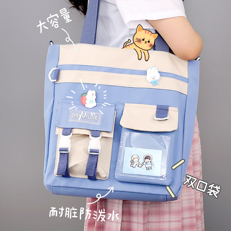 This study is a cloth hand-held test paper book stationery bag large-capacity Japanese oblique cross-student tuition bag high-value junior high school student homework file bag primary school student hand account storage bag