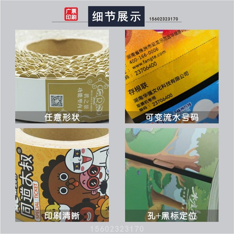 Anti-fake wind scenic drum folding ticket Customized positive side voucher Ripping and punching design thermal ticket printing