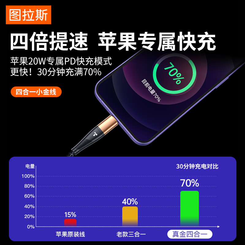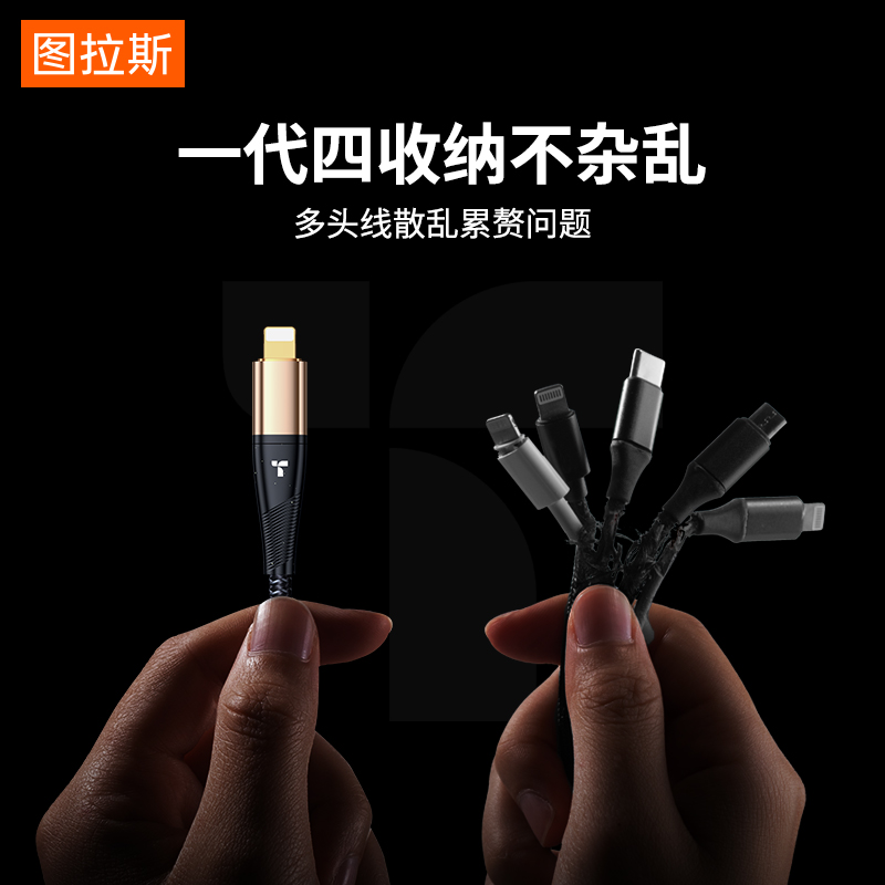 Tulas Four-in-one quick-charge three-in-one data line Three-head-to-three-charge wire multifunction mobile phone 3 Vehicle carPlay multipurpose suitable for Apple Android mobile charging car