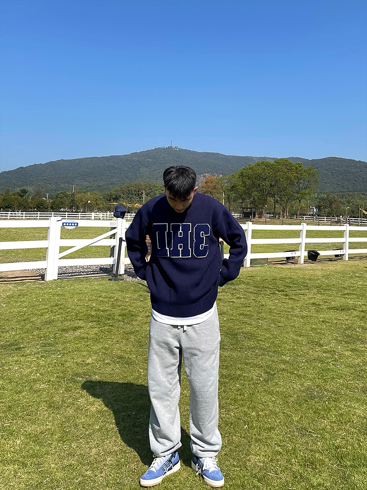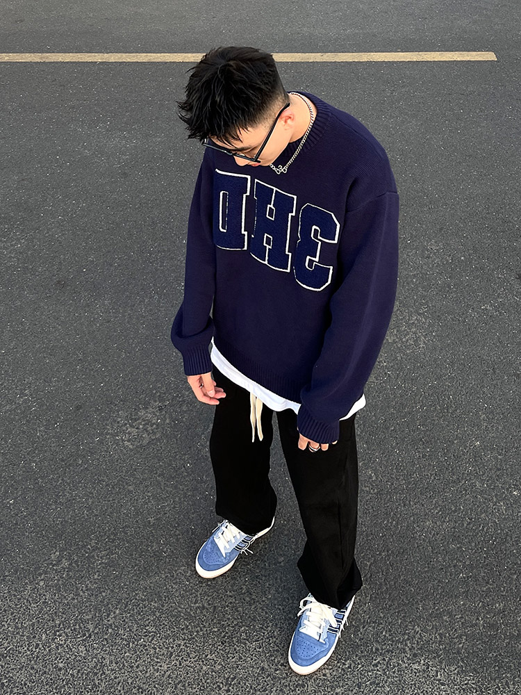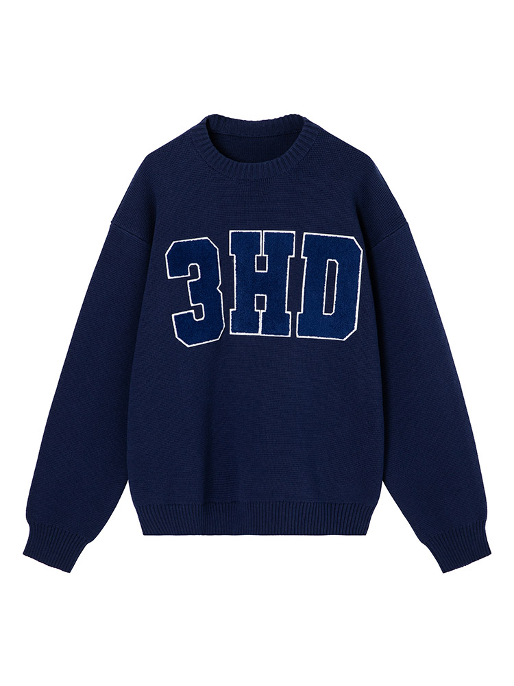 SANBAI 300 autumn and winter 900g heavy sweater men's towel embroidered sweater men's and women's loose round neck top tide
