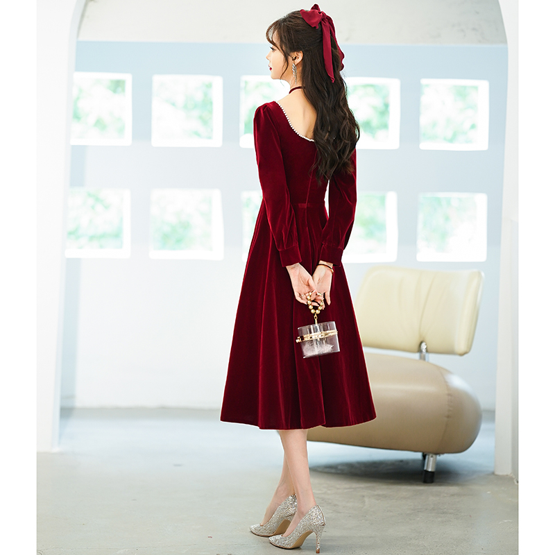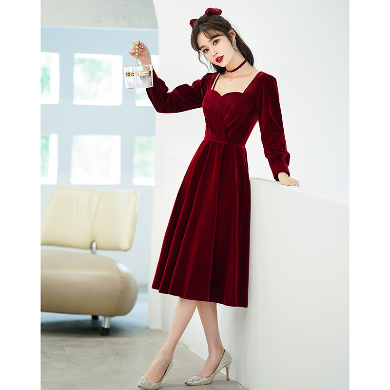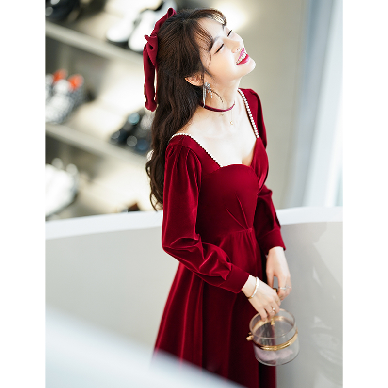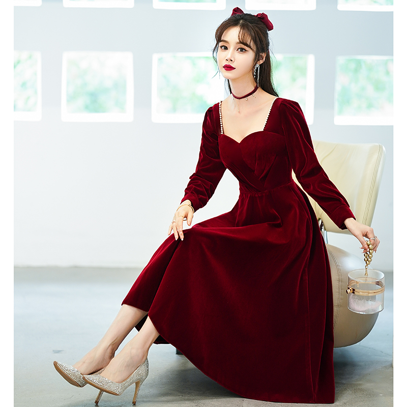 The French toast to the bridal velvet can normally be worn in autumn and winter small child betrothed to the door gown with long sleeves