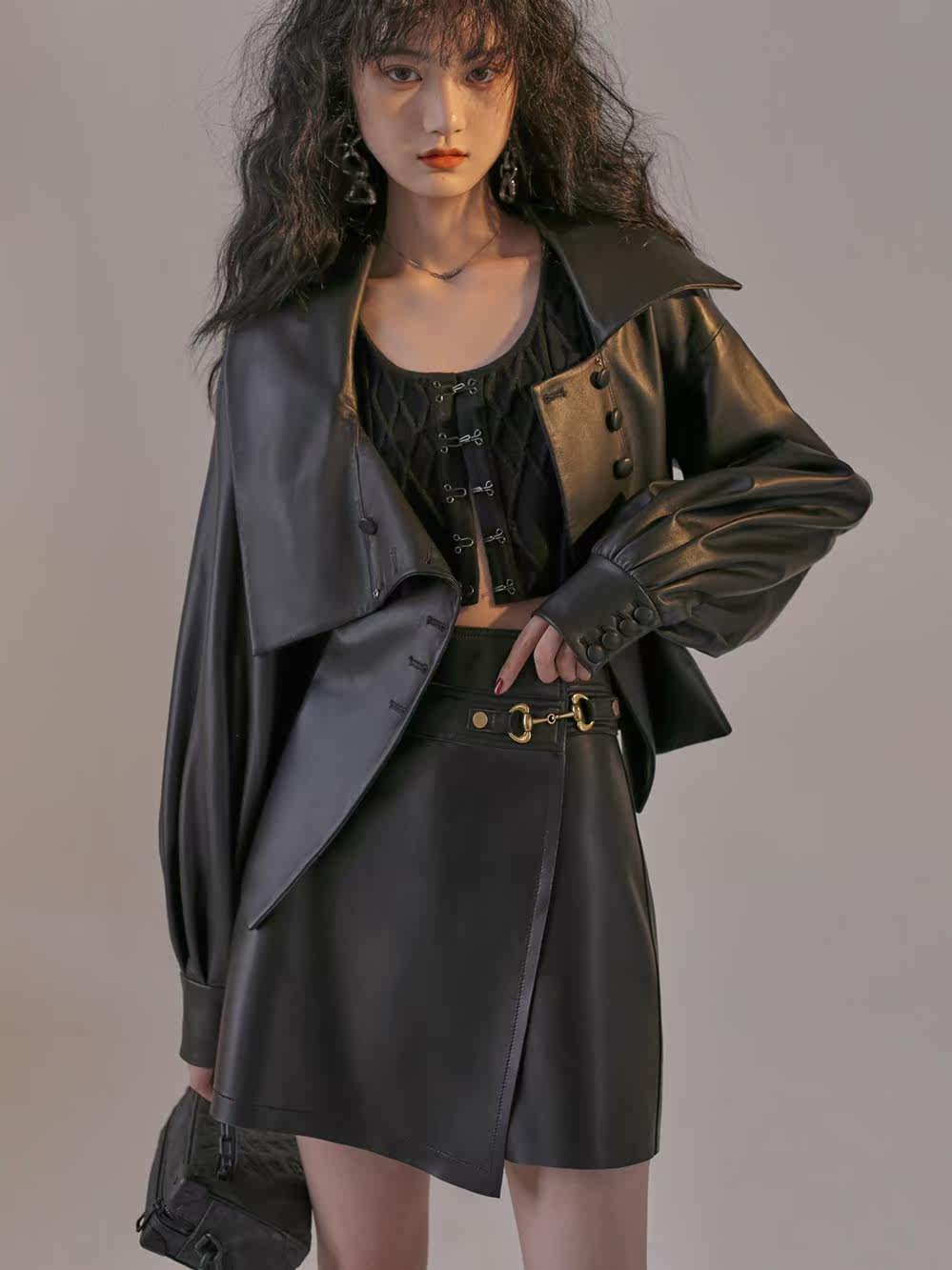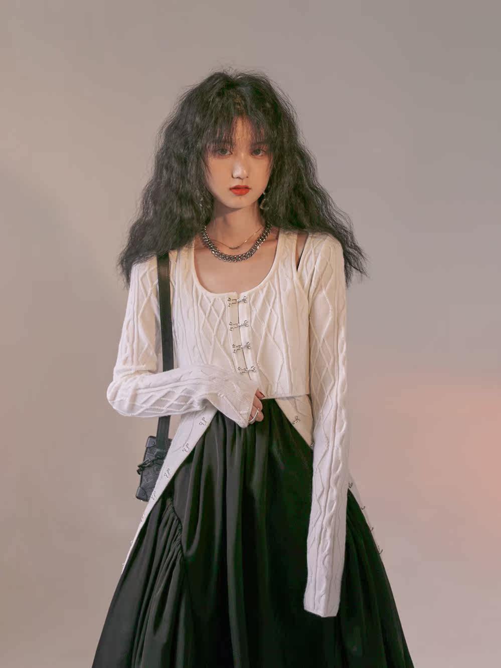MXU Retro Time Autumn New Niche Slim Lock Design Sense Two-piece Set Versatile Twisted Flower Sweater Women