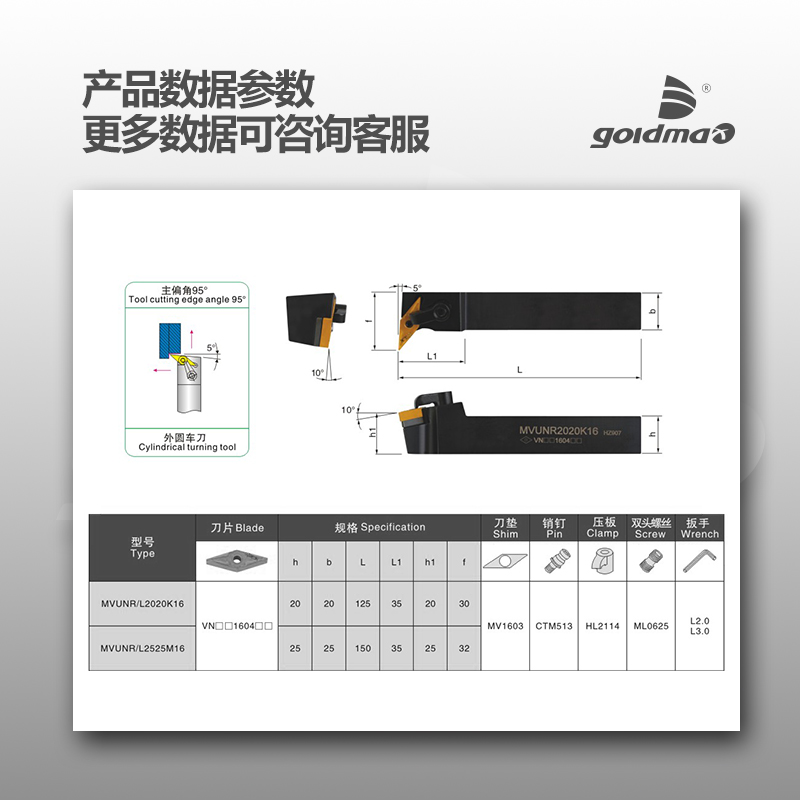 MVUNR1616H16 (16 square positive knife) MVUNL1616H16 (16 square counter knife) MVUNR2020K16 (20 square positive knife)