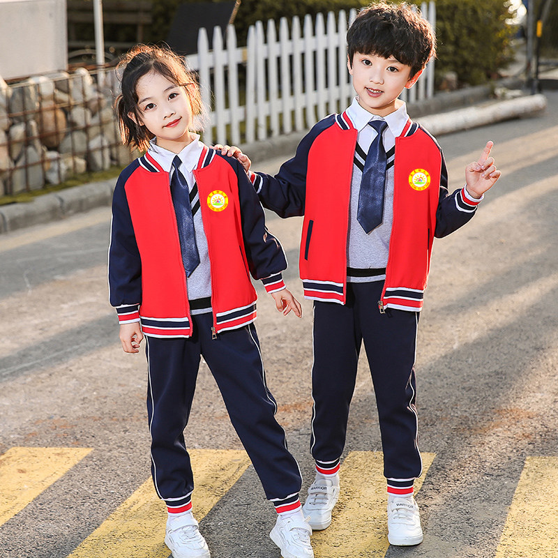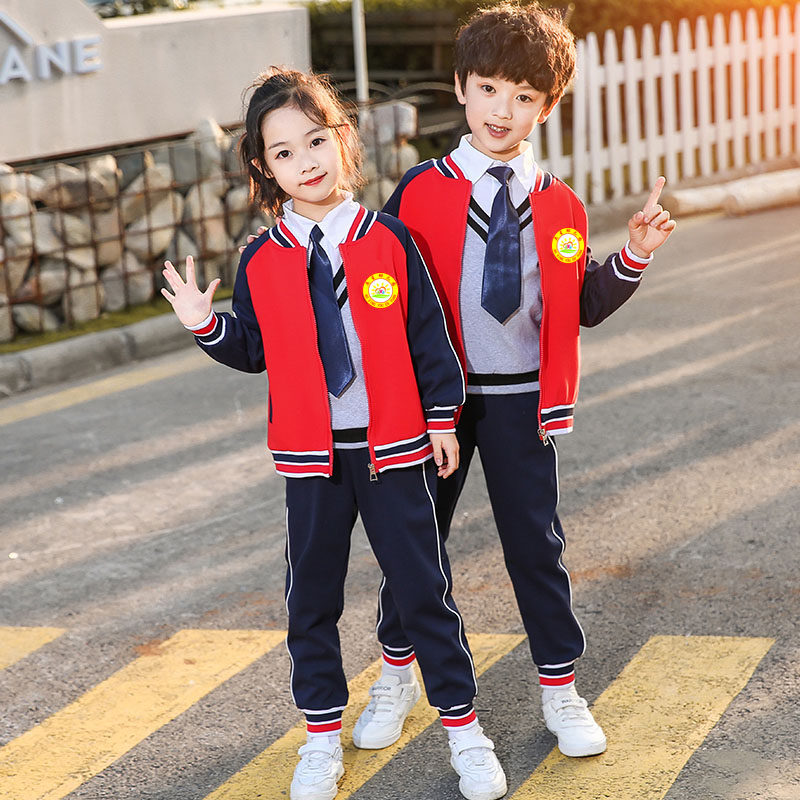 Kindergarten uniforms autumn red primary school uniforms spring and autumn winter clothing new cotton British sports suit custom-made