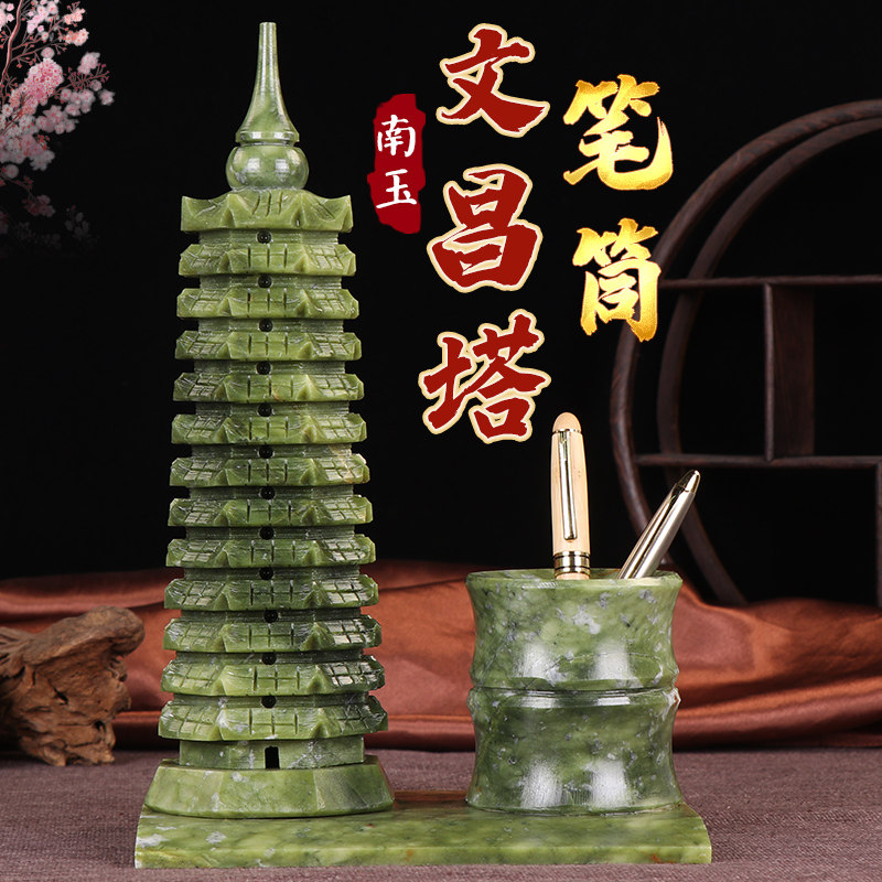 Nanyu Wenchang Tower Flagship Store 9913 13th Floor Natural Topaz Wenchang Tower and Pen Holder Ornament Crafts