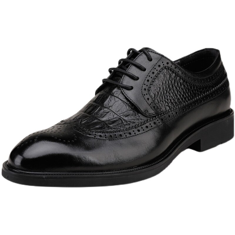AMGCK men's brogue carved leather shoes leather business casual shoes pointed toe derby shoes Hong Kong