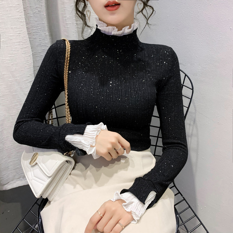 High Collar Lace Lace Fake two dozen undershirt woman blouses with long sleeves Nets sleeves Head autumn winter trumpeter sleeves New