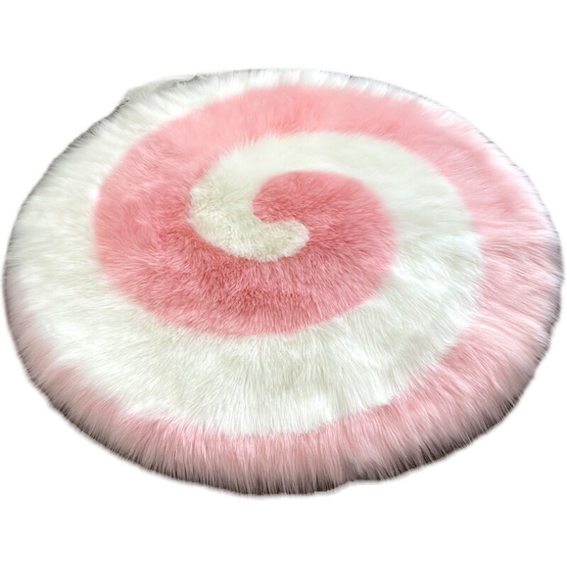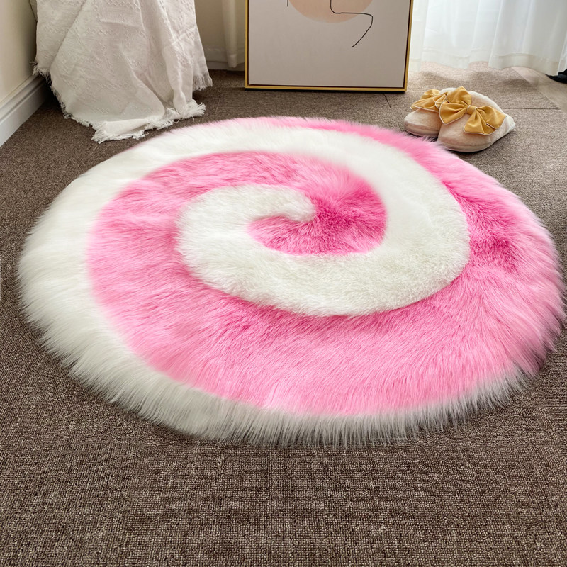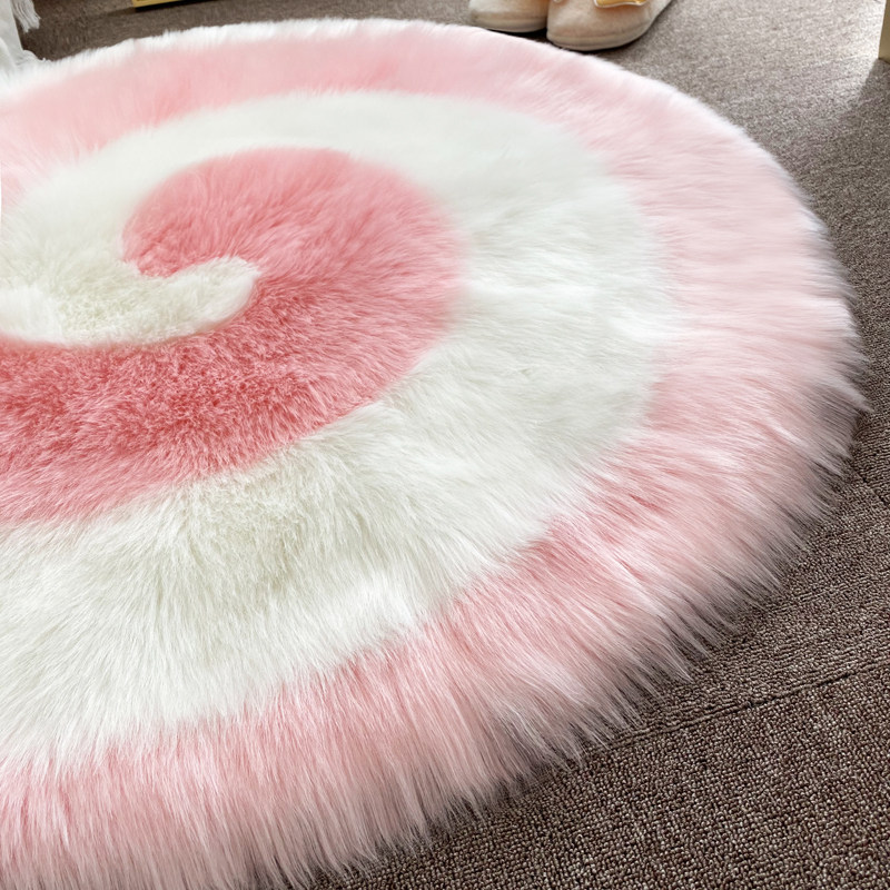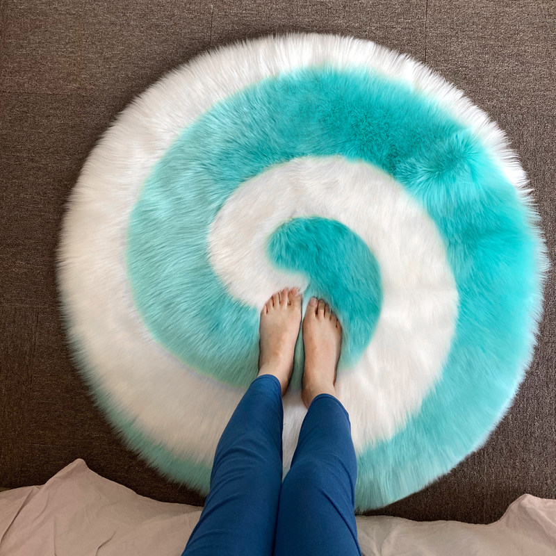Nordic Modern Long Plush Round Rug Imitation Wool Bedroom Bedside Ground Mat Computer Chair Plush Living-room Carpet