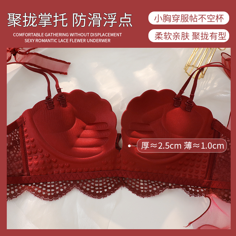 Laney Sexy Lace Shells Cup Maiden underwear No steel ring small breasts to woo this year's red bra hood suit