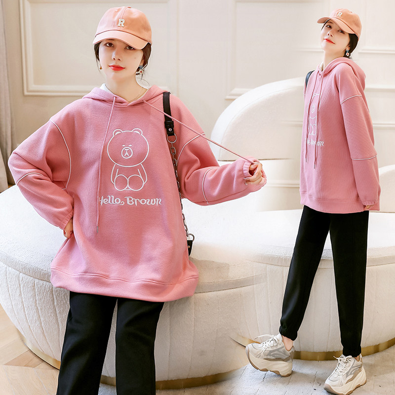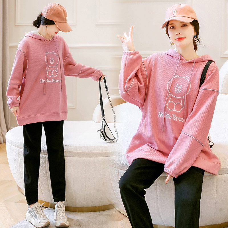 Pregnancy Woman Dress Autumn Winter Fashion style Suit Plus Suede Jacket Head Loose Sweatshirt Casual Blouse Winter Clothing Thickened Sport Pants