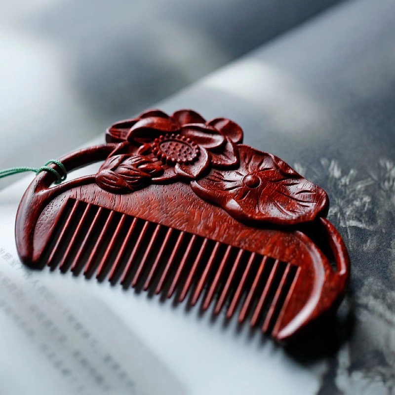 Indian leaf sandalwood comb anti-static conjunction massage sandwood comb to send wife and mother custom gift