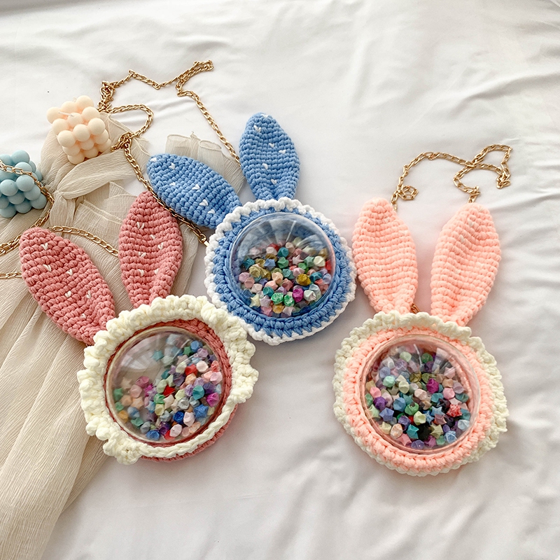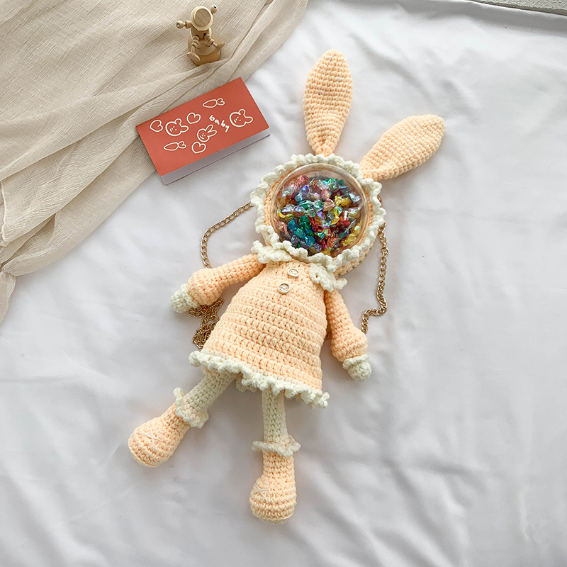 Hand-knitted doll crochet diy material bag hand-made bag knitted hook thread hand-made gift wool rabbit