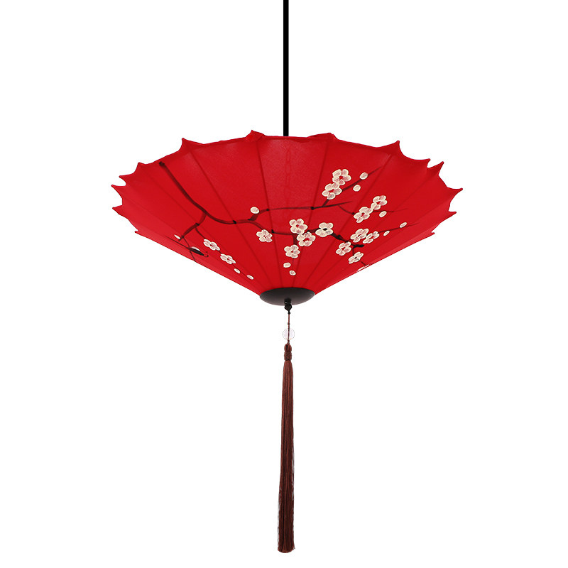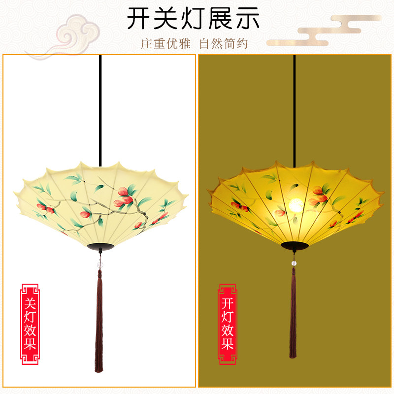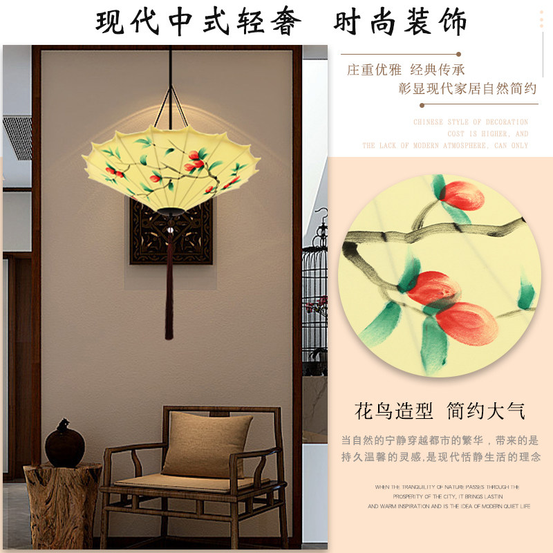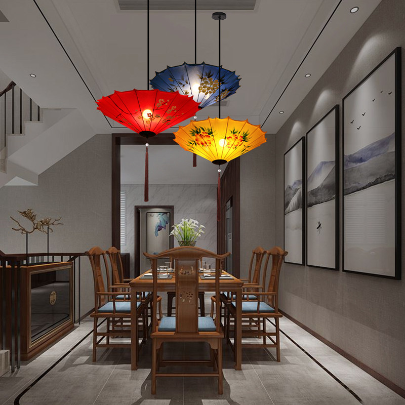 New Chinese Creative Retro Ancient Chandeliers Hand Painted Cloth Art Umbrella Light Aisle Hallway Tea Building Dining Room Fire Pot Shop Lantern Furniture