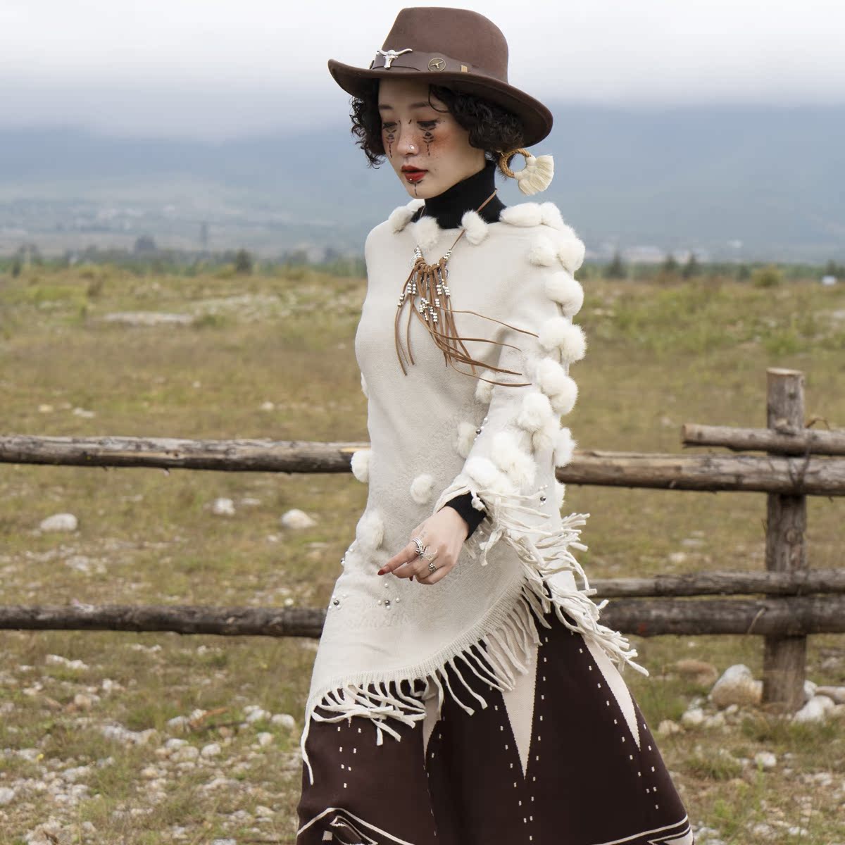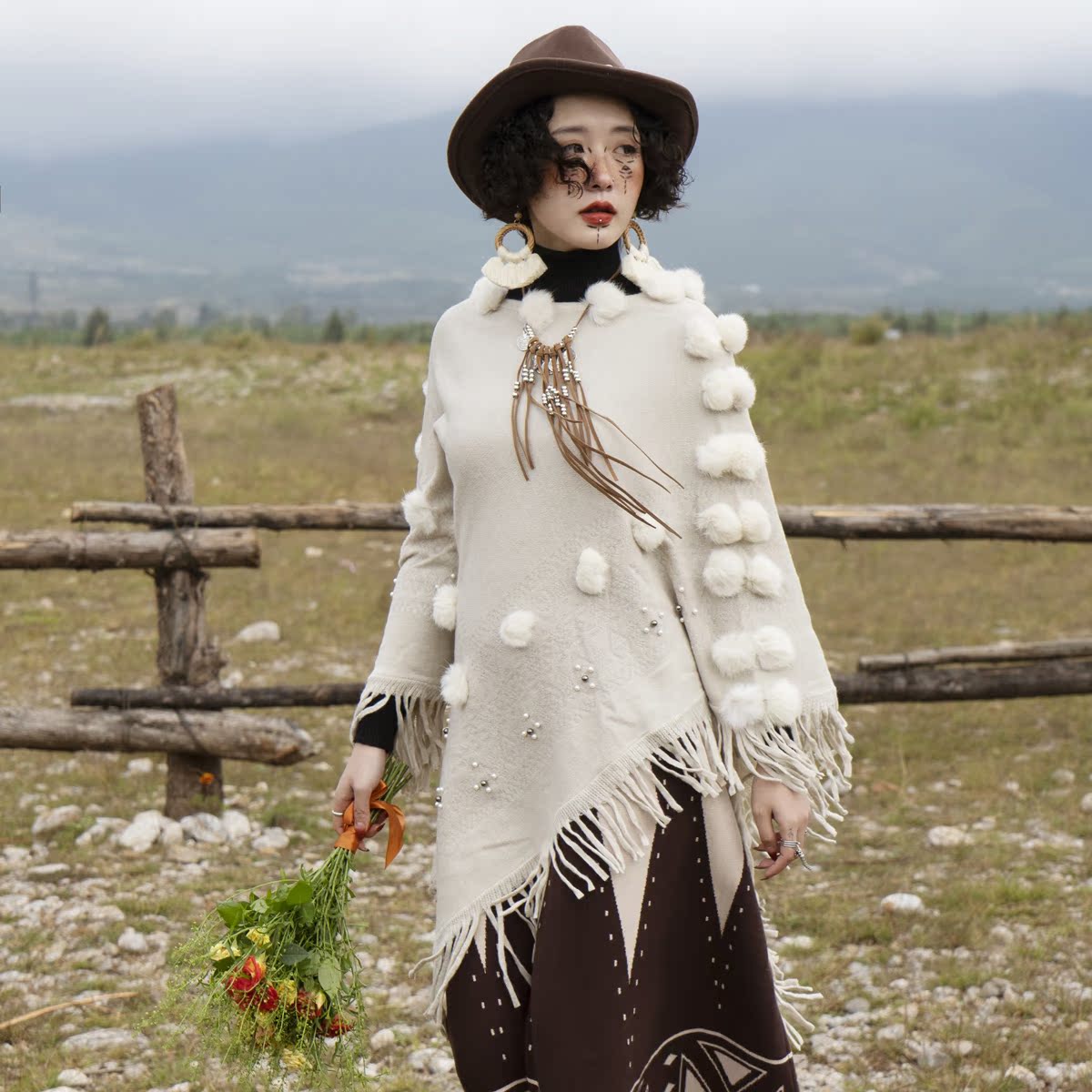 Cat's Brigade Store Autumn Winter Gross Ball Cape Lijiang Wearing A Ride Bohemian Prairie Cape With Shoulder-to-Supper