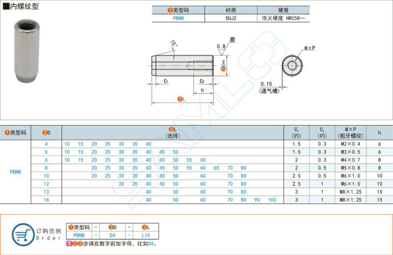 SAMLO size standard locating pin-internal thread type PBNB-D4 D5 D6 D8 D10 D12 D13 D16
