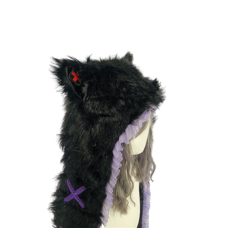 Black purple plush ear hat No refund spot red plush ear hat Remove spot light micro off hair, deliberate carefully pay within 3 days after payment