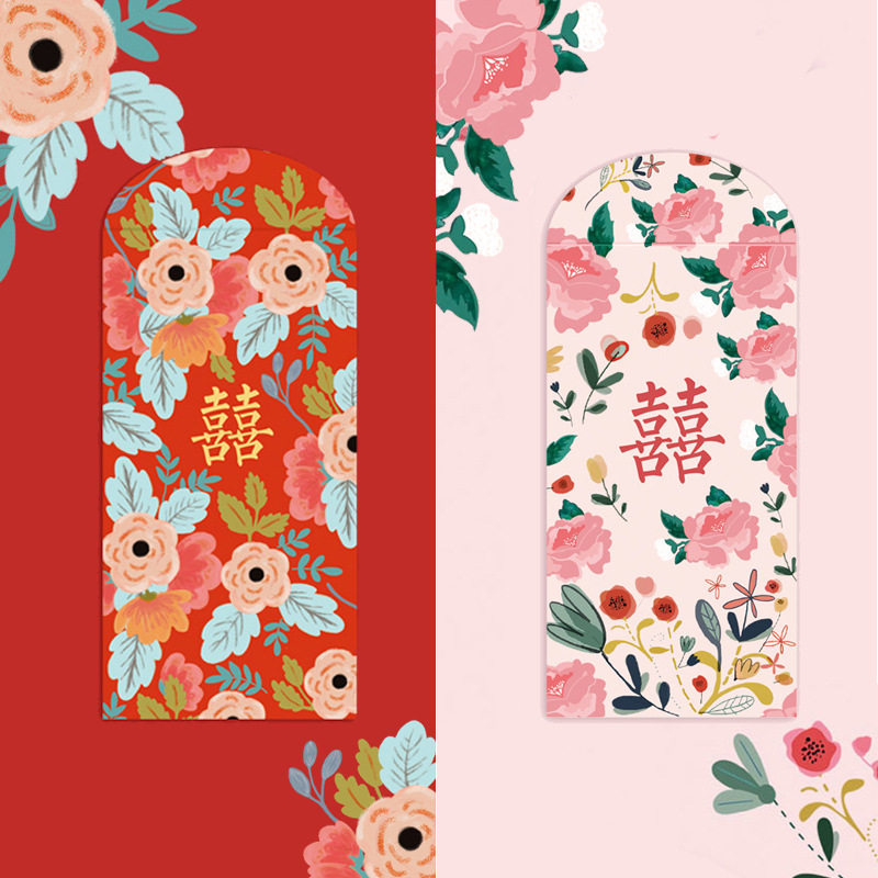 Wedding Wedding Celebration Double Festive Flowers Red Envelopes Creative Joy Character Red Envelopes Bags Wedding Gifts Gold Bags Li is a seal of hard paper
