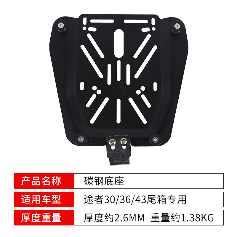 Carbon steel base + screw pack (passerby 30 36 43 carbon steel base + screw pack (passerby 50 65) tail box special base quick release buckle (1) side box special quick release buckle (1) base fixed screw pack set tail box lock cylinder a pair of side box lock cylinder set three boxes lock cylinder a set of tail box reflective sticker a pair of side box reflective paste a pair of tail box upper bag corner (1) tail box under the bag corner (1) side box upper bag corner (1) side box under the bag corner (1) tail box hinge page a side box hinge page