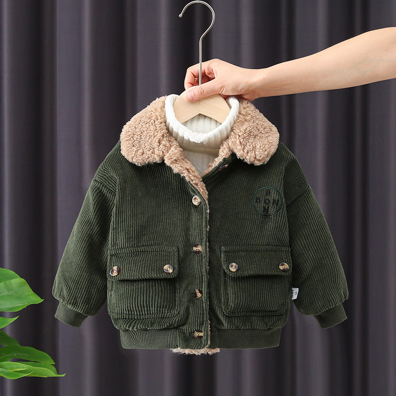 Boys' coat in autumn and winter plus thickening children's suit 2021 new corduro tops baby winter dress tide
