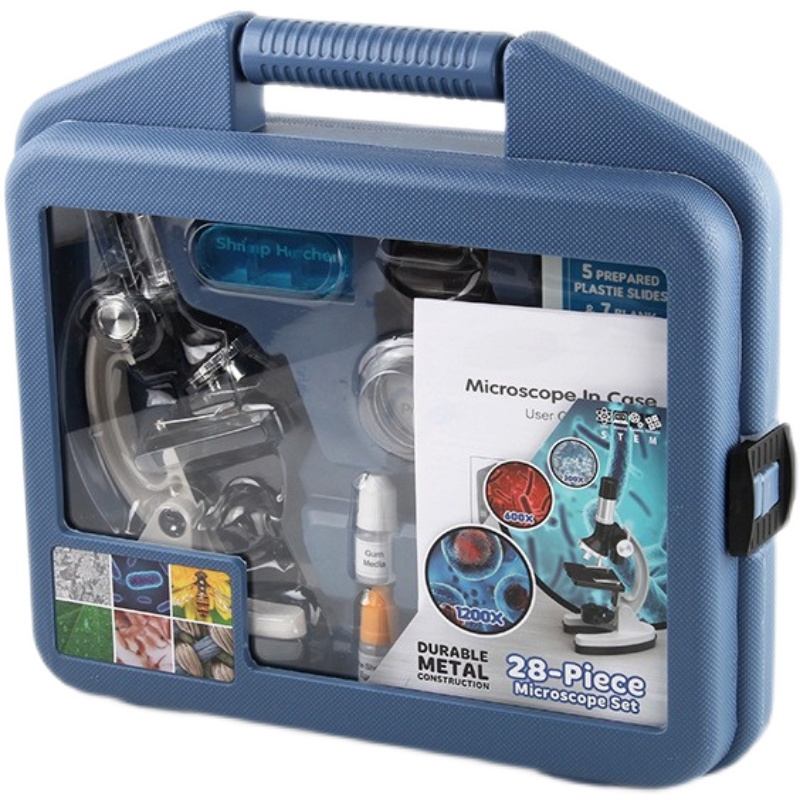STEM children's metal microscope 1200 times magnification large eyepiece pupil science laboratory toys
