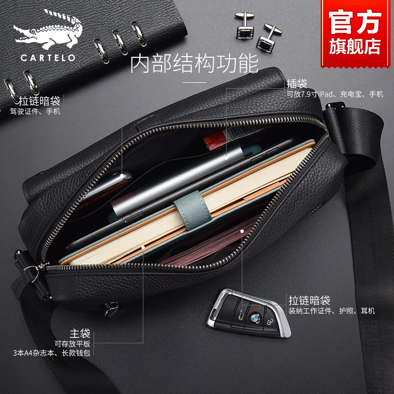 Crocodile Men's Bag Single Shoulder Bag Men's Large Capacity Tide Card Slanted Satchel Cross Section Genuine Leather Leisure Sports Cash Cow Leather Briefcase