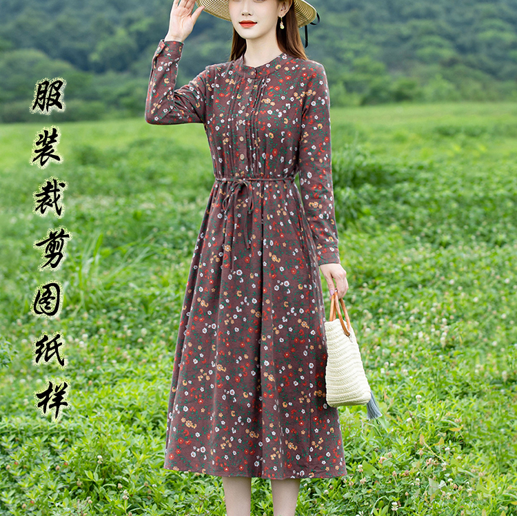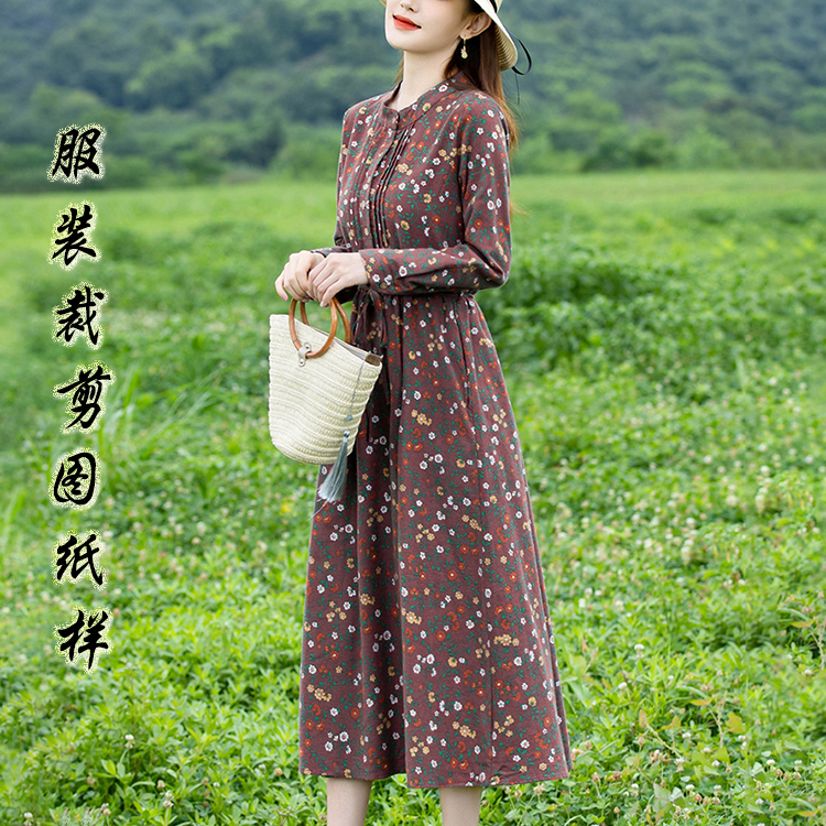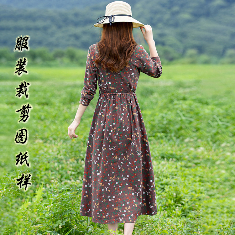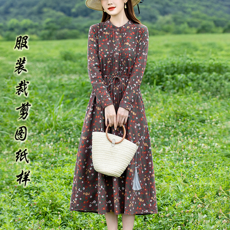 Hemp Cotton Long Sleeve Ocean Dress Paper Sample Spring Autumn Season New Women's Dress Boilerplate Drawing Rope For Waist A Character Dress Paper Sample Cut