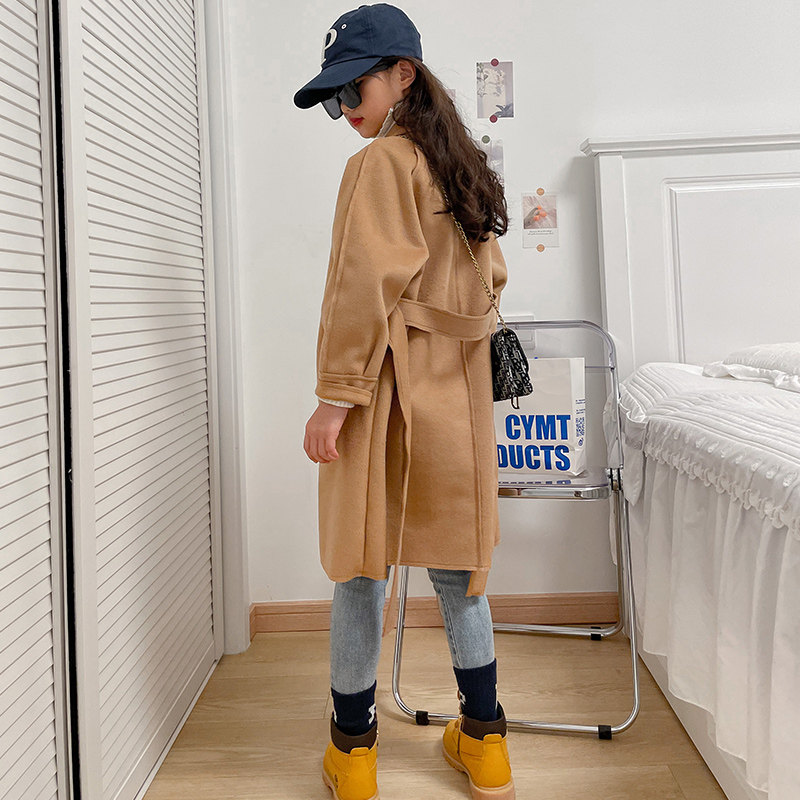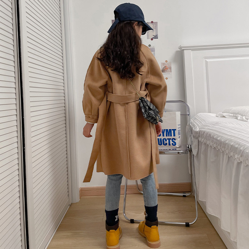 Girl's autumn winter medium long version coat 2022 new Korean version CUHK Scout red trendy girl Double face cashmere Grand coat