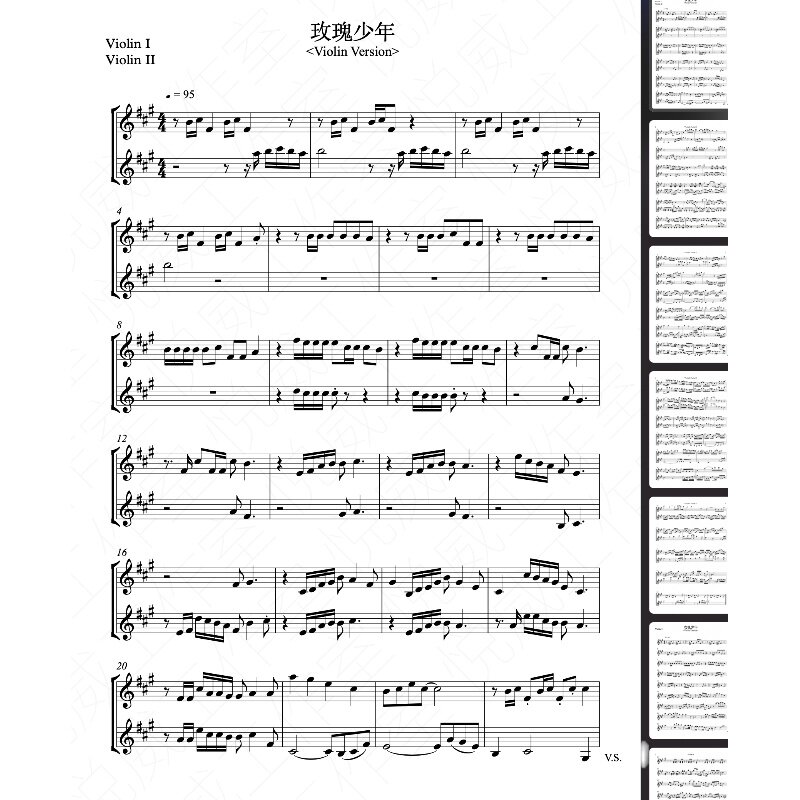 (Yuewei Studio) Violin score of "Rose Boy" with high-quality harmony accompaniment