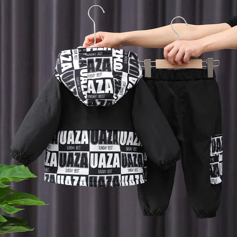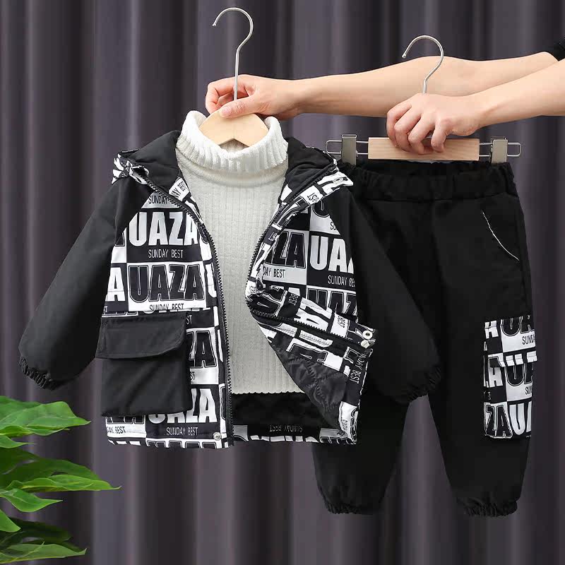 Boy suit autumn and winter 2021 new children handsome clothes baby winter fashion clip cotton thickened two sets of damp