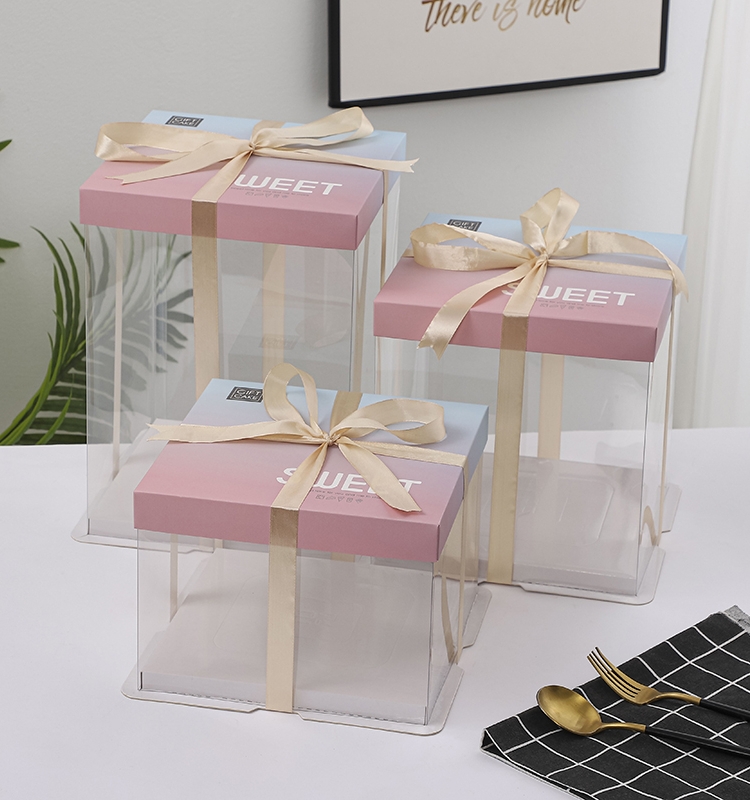 Cake box packaging box transparent 4 inch 6 inch 8 inch 10 inch 12 inch Single double layer plus high birthday cake box 50 sets-Taobao