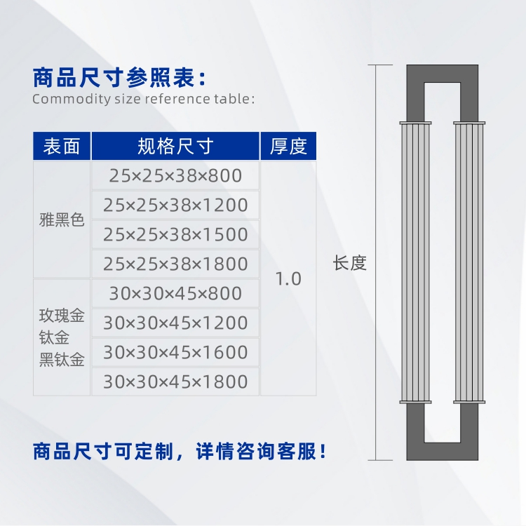Glass door pull handle stainless steel Chinese side possession frame hotel office modern push-pull steel-shaped big door handle