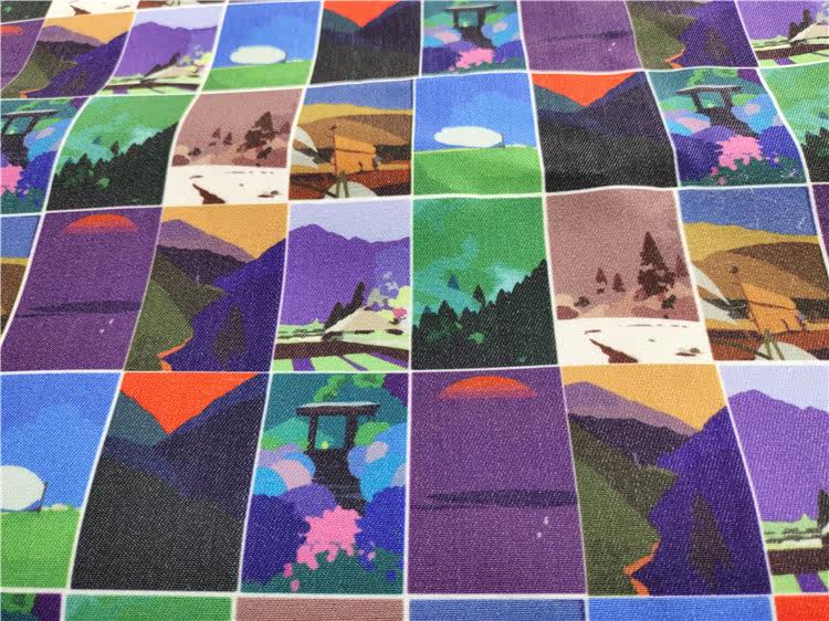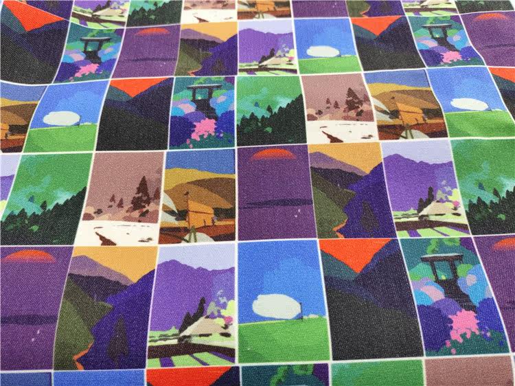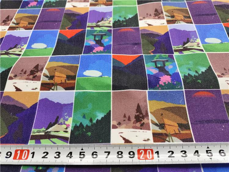 Cartoon fabric fine canvas printing handmade diy fabric sofa cover fabric bag bag dormitory tablecloth beautiful mountain view