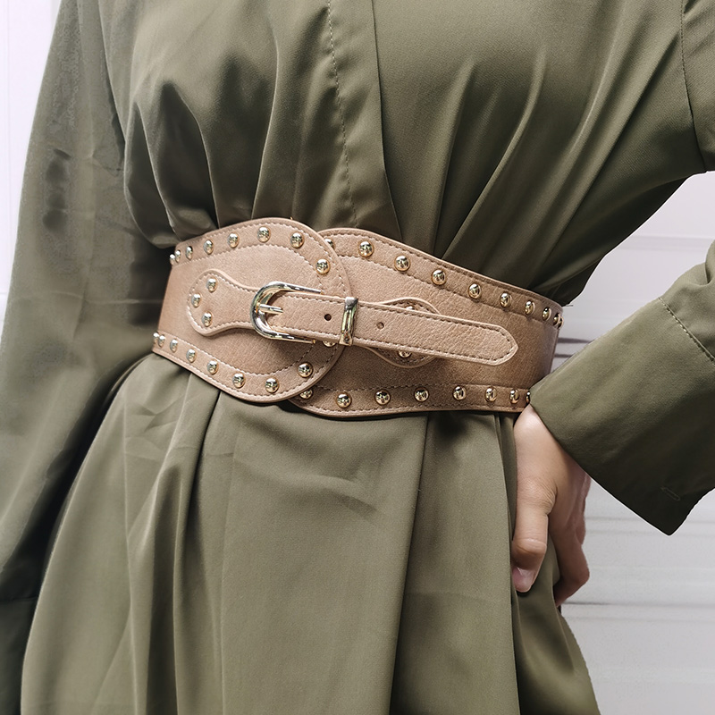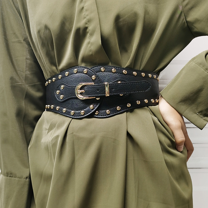 Rivet Punk Wind Waist Seal Bunches Waist and America Fashion retro elastic and elastic Decorative Wide Girdle Female Worthy Dresses Big Clothes