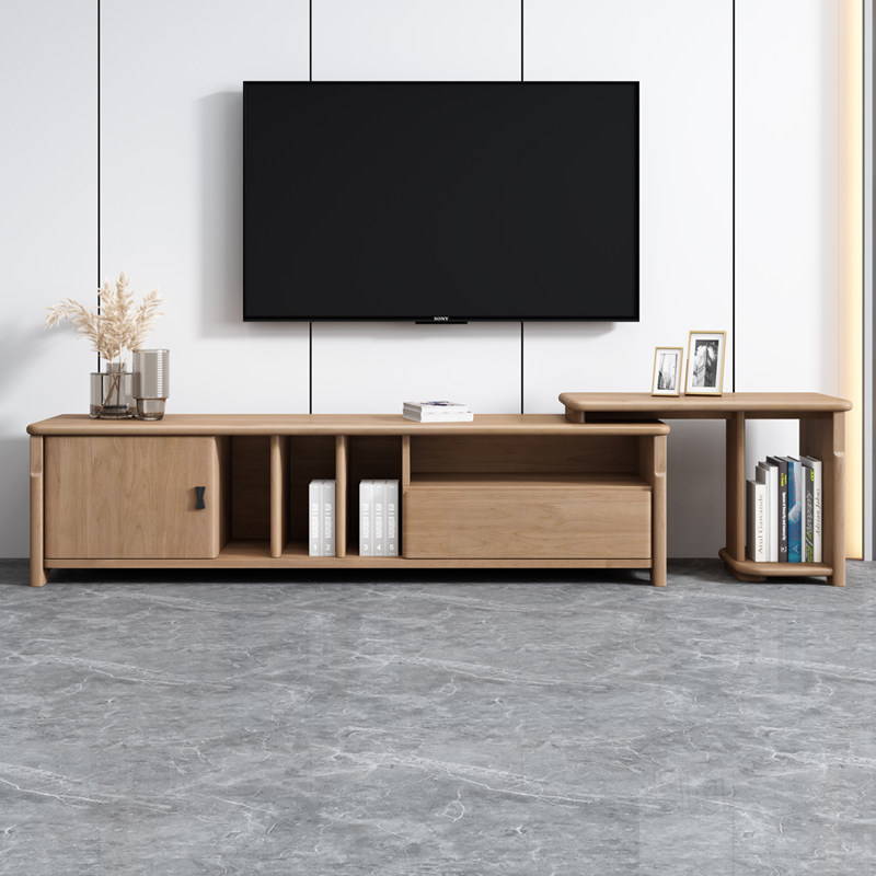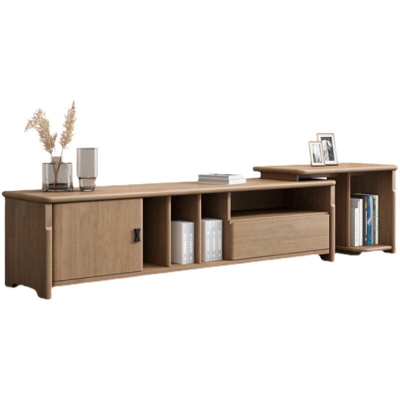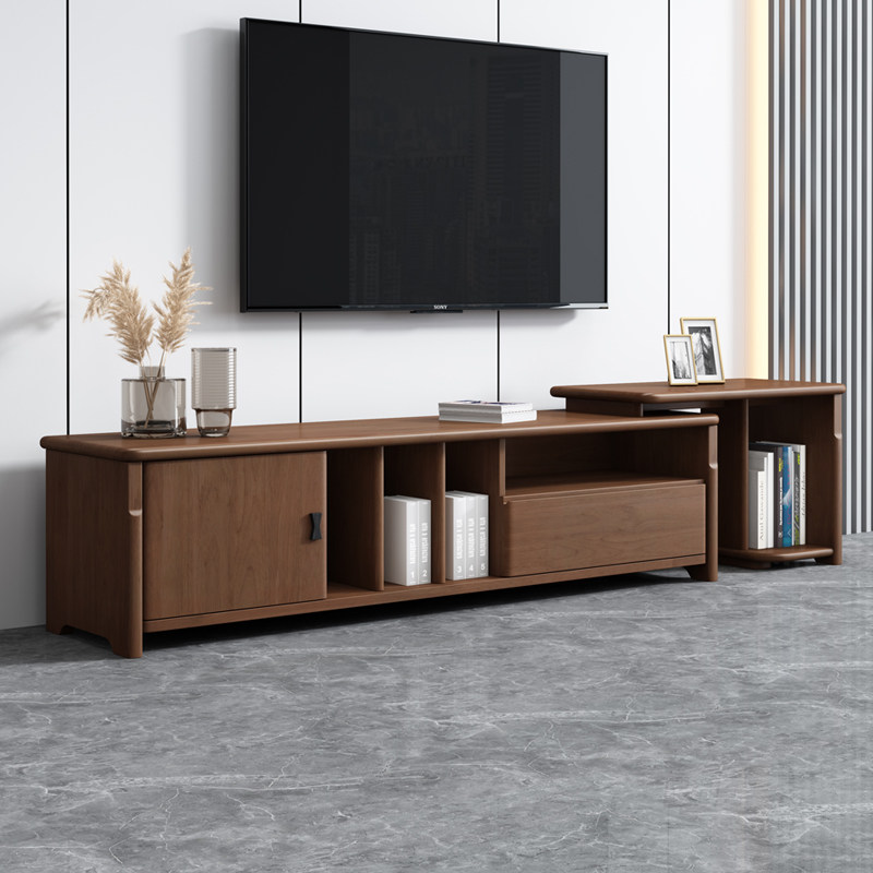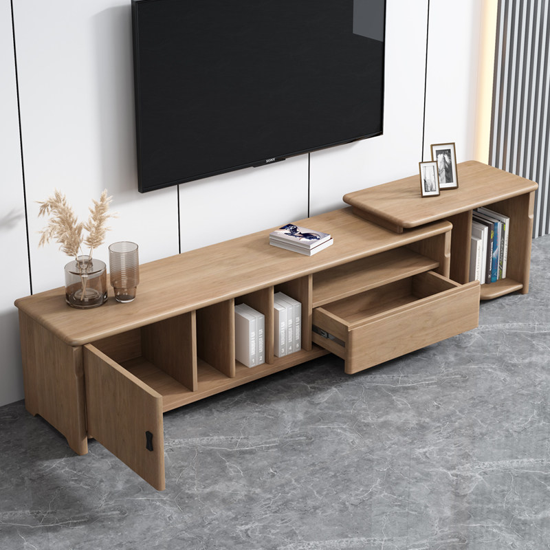 All solid wood TV cabinet modern minimalist living room furniture log retractable floor cabinet home storage cabinet wall cabinet