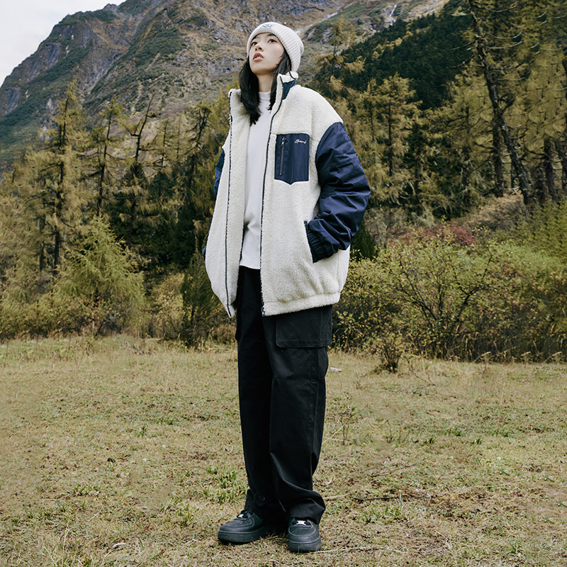 Jenny Space Agency Harajuku Style Stitching Contrast Color Salt Fried Street Lamb Plush Padded Jacket Women's Winter All-Match Tops - Taobao