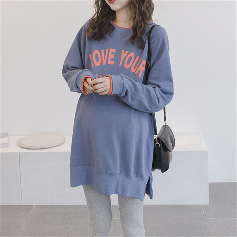 Nursing clothes autumn and winter new outer wear postpartum cotton nursing clothes loose and thin medium-length fashion thick T-shirt