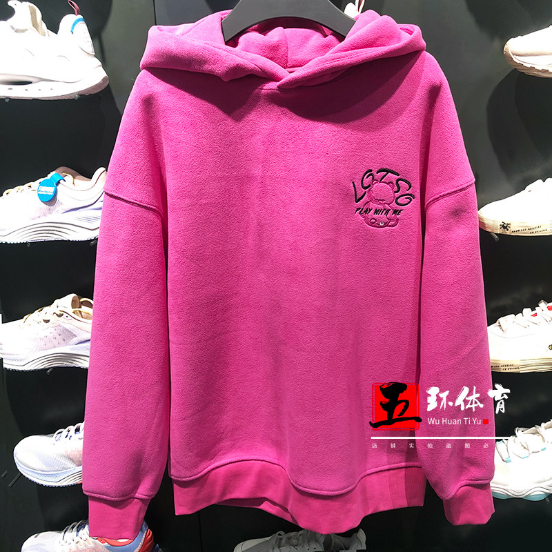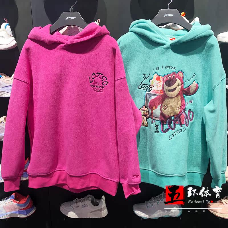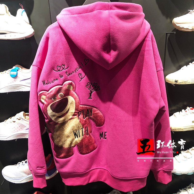 Li Ning Wei coat 2021 Winter new strawberry bear cartoon printed picture women's headgear Lianhood sweatshirt AWDR760