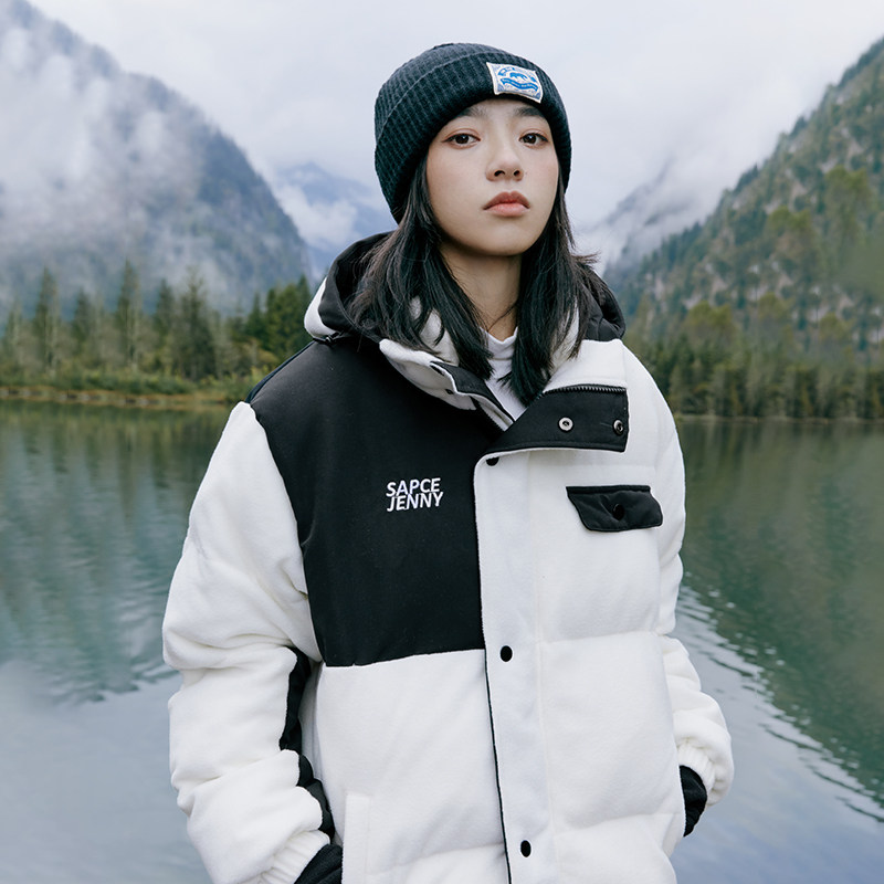 Jenny NASA Japanese polar fleece color matching hooded cotton coat outdoor cotton clothes women's winter thickened coat ins tide
